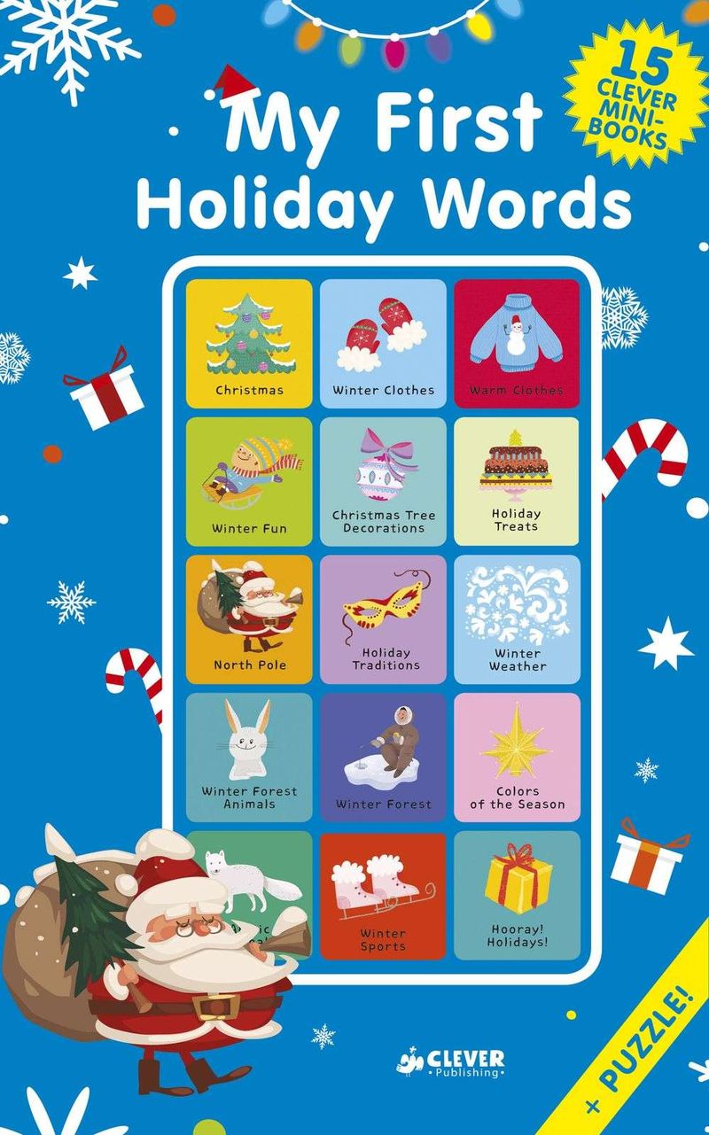 Зимние сказки, животные Севера, как праздновать Новый год — все базовые темы для развития интеллекта малыша теперь в одной коробке «My First Holiday Words». Развивайте мелкую моторику, знакомьтесь с новогодними традициями и учите английский язык одновременно!