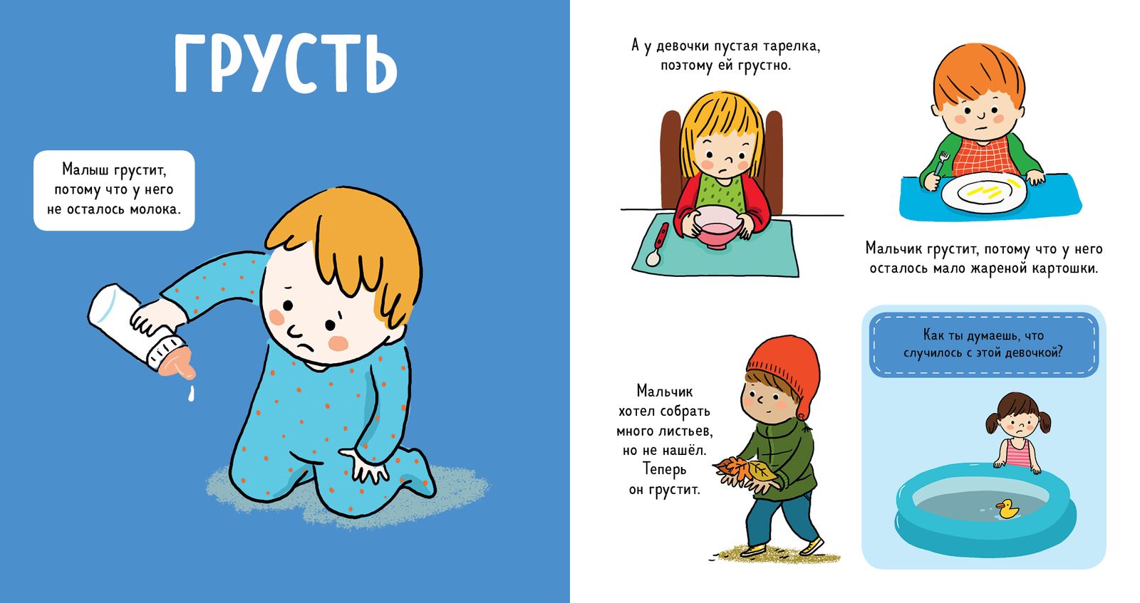 В этой книжке есть все — радость, смущение, волнение, растерянность, удивление и другие чувства и эмоции, которые может испытывать человек. На каждом развороте вы найдёте забавные истории, которые наверняка будут знакомы и вам, и детишкам.