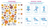 Все упражнения сопровождаются яркими рисунками — так малыш сможет долго сохранять интерес к занятиям, и очаровательными помощниками-монстриками — Брейни и его друзьями. Вместе с монтриком Рестом малыш научится правильно дышать, чтобы справляться с волнением. С Трисси заполнит наклейками-ракушками стеклянные банки. С Брейни выучит популярные английские слова.