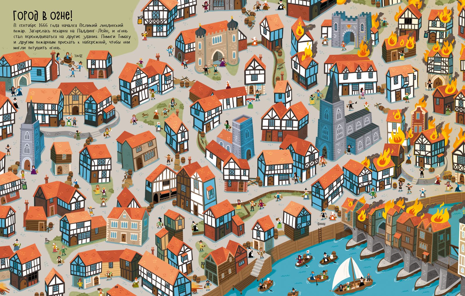 Малышу предстоит помочь потушить пожар 1666 года, проведя по лабиринту пожарных, довезти королеву до Букингемского дворца, поприветствовав всех своих подданных по дороге, а также показать Кенни путь до сломавшихся легендарных часов, чтобы он мог их починить. Лабиринты, ходилки, бродилки и прочие развлечения ждут вас на каждом развороте.