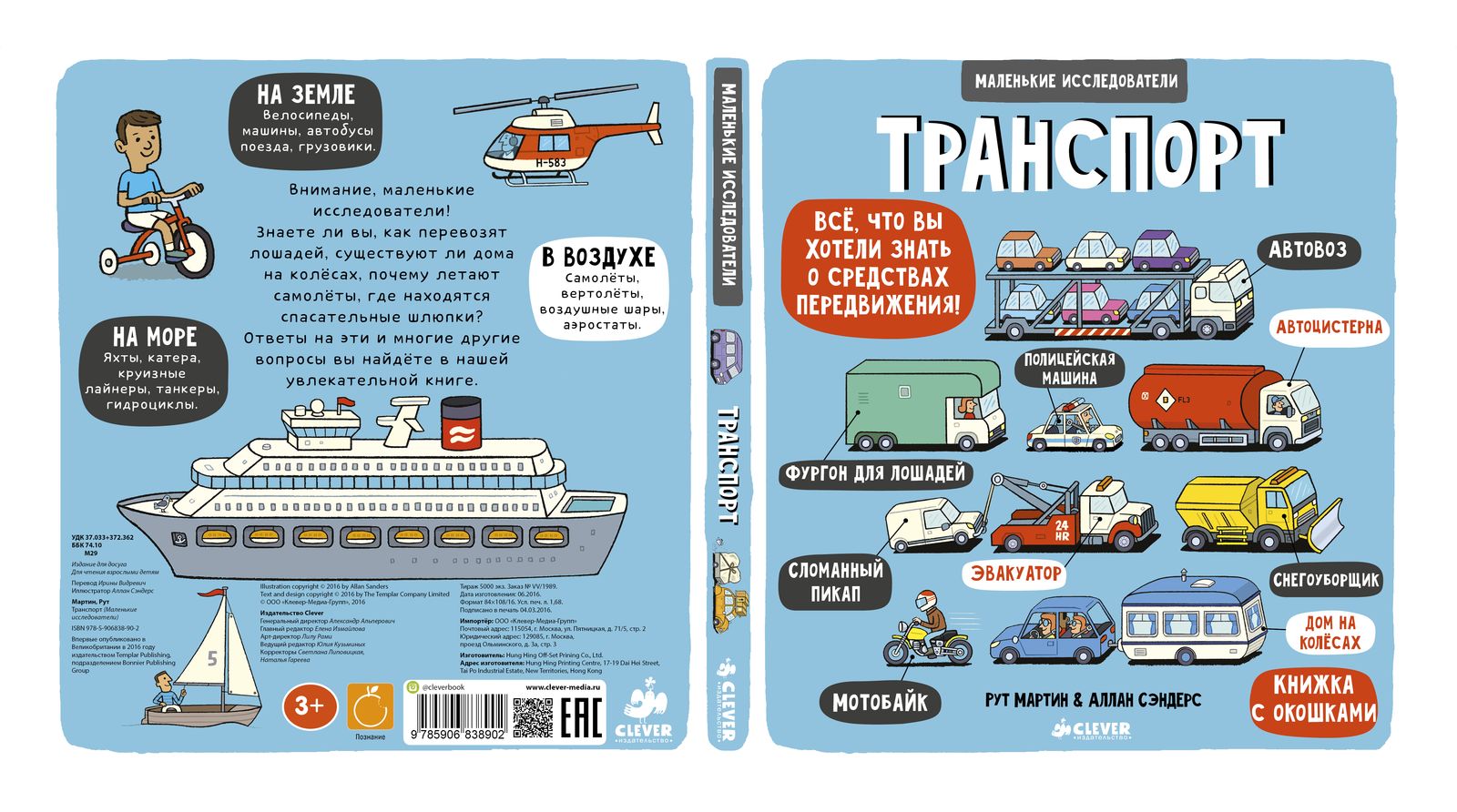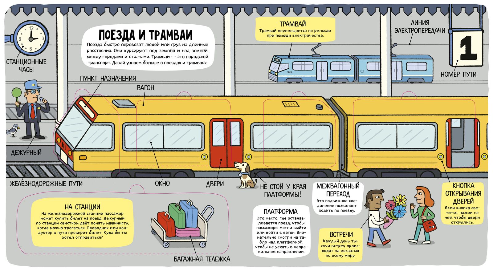Полицейская машина, автоцистерна, эвакуатор, снегоуборщик, мотоцикл… А в какой машине возят лошадей? А зачем трамваю рожки? А как пароход плывет без паруса? Почему самолет не машет крыльями? На все вопросы маленького «почемучки» есть ответы в этой книге. На каждом развороте подробный и очень понятный рассказ о том, какие бывают машины, поезда, корабли, и о том, как они работают и для чего служат. Хочешь узнать, кто ездит на автобусе? Открой окошко и все увидишь.