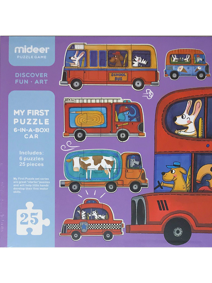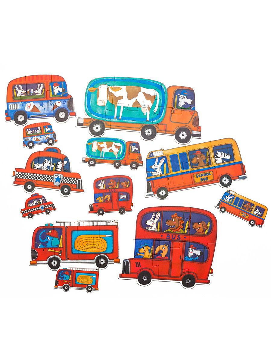 Макси-Пазл "Транспорт" от компании Mideer - состоит из 31 элемента сделанного из плотного картона. Из них малышу предлагается собрать 6 различных транспортных средств: молоковоз, школьный автобус, автофургон мороженица, такси, экскурсионный автобус. Каждая фигура состоит из 3-6 элементов. С оборотной стороны пазлы одной фигуры окрашены в одинаковый цвет, что позволит малышу изучить цвета и сделать выборку нужных элементов. Ребенком процесс собирания пазла воспринимается как занимательная игра, которая формирует усидчивость, терпение, внимание и аккуратность. Пазлы развивают логику, пространственное и образное мышление, память, мелкую моторику. Пазлы упакованы в красивую прочную картонную коробку, а качество и дизайн содержимого не оставят равнодушными никого.