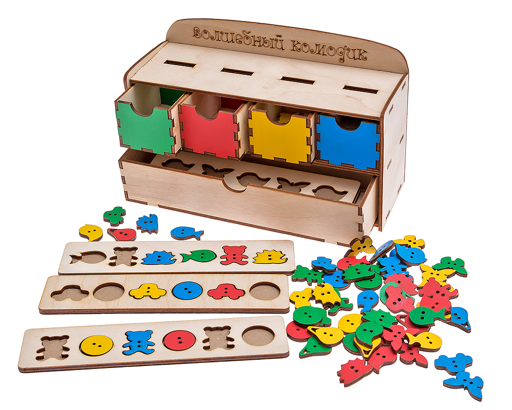 Волшебным комодик называется потому, что нашли его на дне морском. А внутри него – волшебные драгоценные камни. Волшебный комод обогатит ребенка. Игра поможет изучить геометрические фигуры; научит находить нужную фигуру среди множества других и научит работать по образцу.