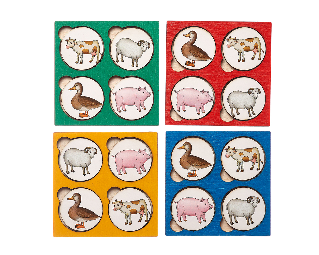 1. Запоминалки. Попросите ребенка запомнить расположение животных на планшете. Пусть малыш отвернется. Поменяйте местами фишки и попросите ребенка сказать, что изменилось. В процессе игры изучайте понятия "вверх"-"вниз", "справа"-"слева".