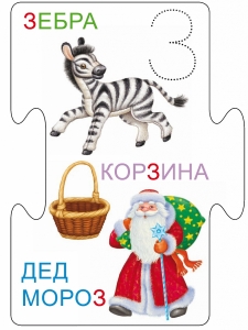 - 33 двусторонние карточки-пазла с изображением букв, предметов и животных, а также прописи для обучению письму.