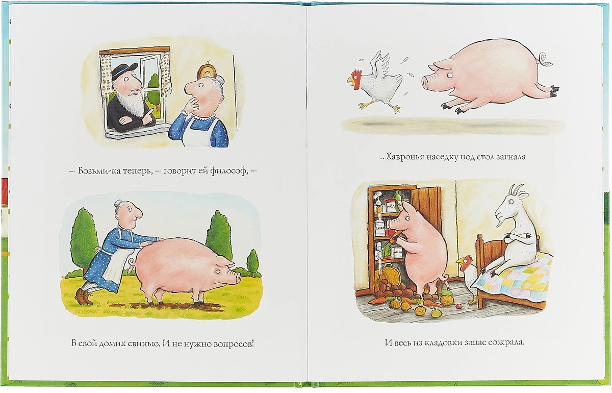 Как быть если в домике тесно? Верное средство знает старый философ: "Взять курицу в дом. Только чур без вопросов!" А вслед за курицей-несушкой - блохастую козу, обжору-свинью и корову… И только когда прогонишь их обратно на двор, то поймешь, что на самом деле дом не мал, а велик. Это самая первая книга писательницы Джулии Дональдсон и художника Акселя Шеффлера - авторов мировых бестселлеров "Груффало" и "Дочурка Груффало" и обладателей множества литературных наград. Для чтения взрослыми детям.