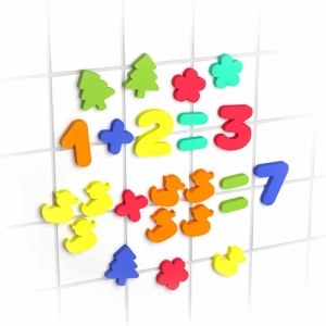 Даже купание малыша можно превратить в веселое занятие, на котором кроха познакомится с цифрами и научится считать. Родителям останется лишь разместить на ванне или плитке мягкие полимерные аксессуары из этого набора, а крохе потребуется лишь внимательность и некоторое время, чтобы решить простые математические примеры.