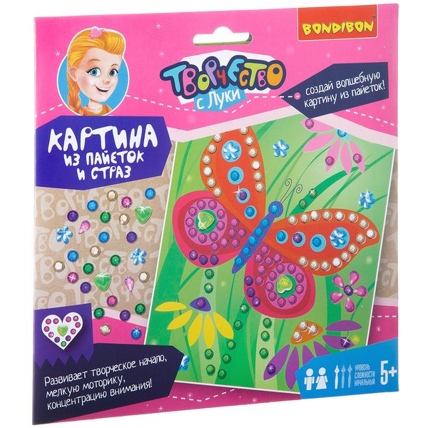 Bondibon предлагает создать яркую аппликацию с помощью пайеток и блестящих страз.