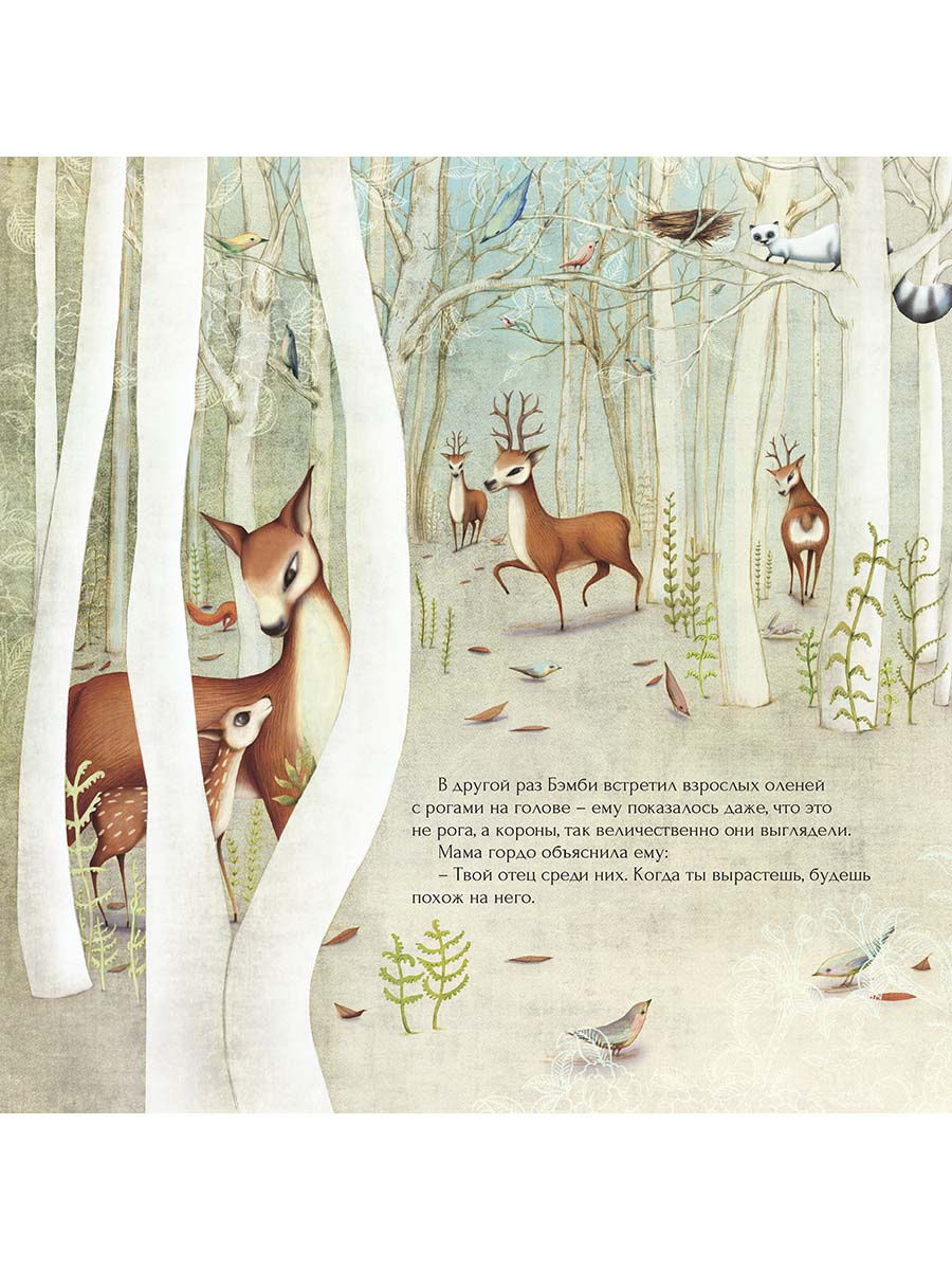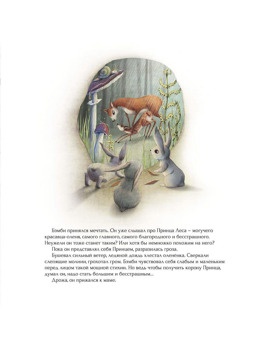 Оленёнок Бэмби появился на свет на зелёном ложе из листьев. Мама вылизала его — и он сразу же встал на ноги. Ему предстояло открыть целый мир! Ароматы леса, гудение пчёл, порхание бабочек. Однако лес таит в себе и опасности – малышу Бэмби многое предстоит потерять и многое обрести. Ему предстоит стать взрослым...