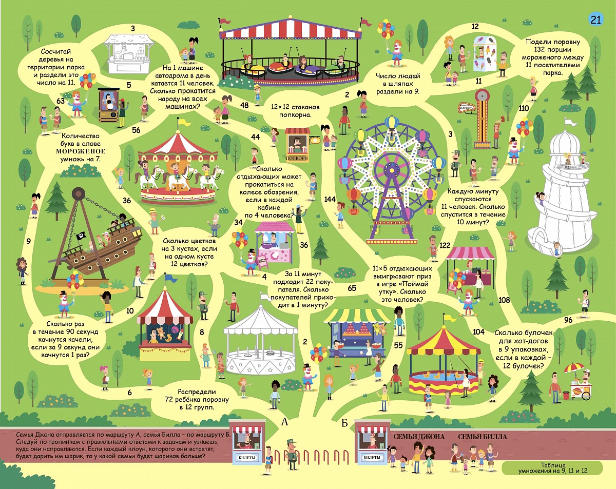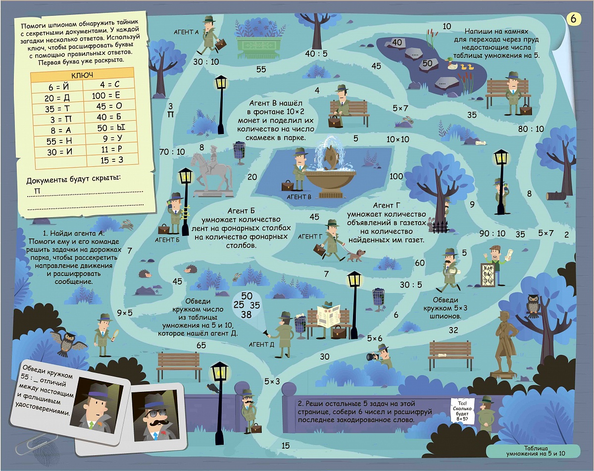 - 30 отрывных листов с разнообразными активити-заданиями для изучения таблицы умножения: графические и логические головоломки, задачи на умножение, кроссворды и лабиринты, числовые ребусы и задания «соедини по точкам», задания на внимание, «найди и покажи» и другие.