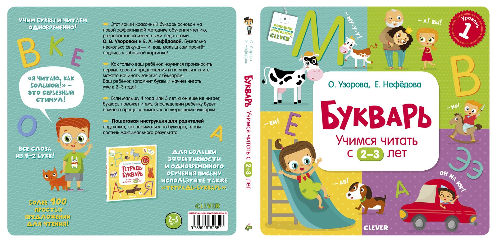 В дошкольный период память у ребенка непроизвольная, он лучше запоминает то, что вызвало какие-то эмоции. Ни для кого не секрет, что ребенок скорее запомнит яркую картинку или привлекательный видеоролик, чем монотонные наставления. «Букварь. Учимся читать с 2–3 лет» создан именно с учетом психолого-педагогического развития детей дошкольного возраста. Материал подан в легкой игровой форме, а линейки развивающих пособий прекрасно дополняют друг друга.