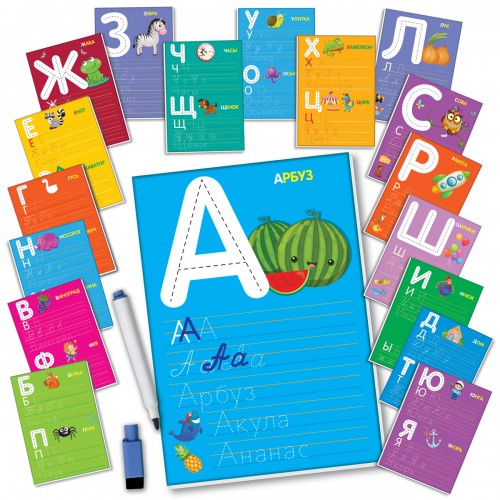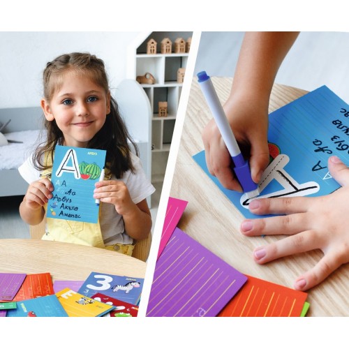 На красочных карточках собрались буквы и слова! Нужно лишь взять в руки маркер и оживить их!