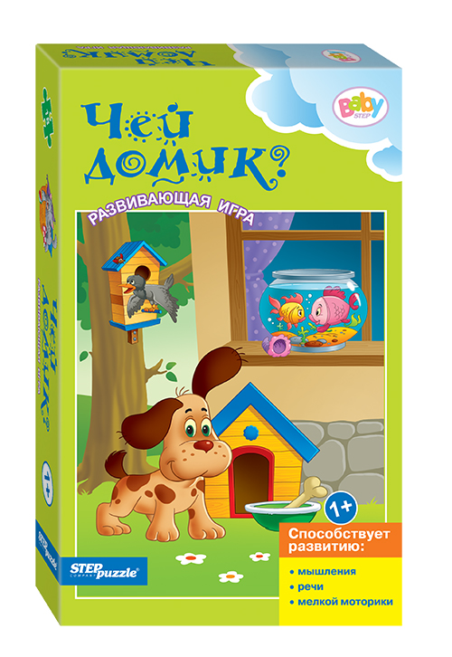 Развивающая игра "Чей домик" показывает ребенку место обитания домашнего животного; взрослый, помогая, побуждает правильно назвать домик.