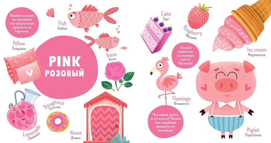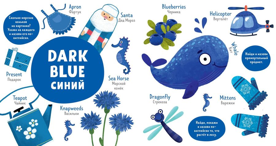 «Colors. Цвета» — книжка-игра с веселыми заданиями, которая идеально подходит для первого знакомства с английским языком. С ее помощью малыш научится распознавать 10 разных цветов и называть их на русском и английском языках.