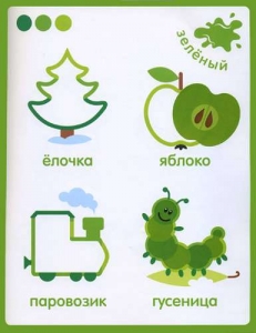 Спросите малыша почему на одной странице поместили гусеницу, ёлочку, яблоко, трактор?