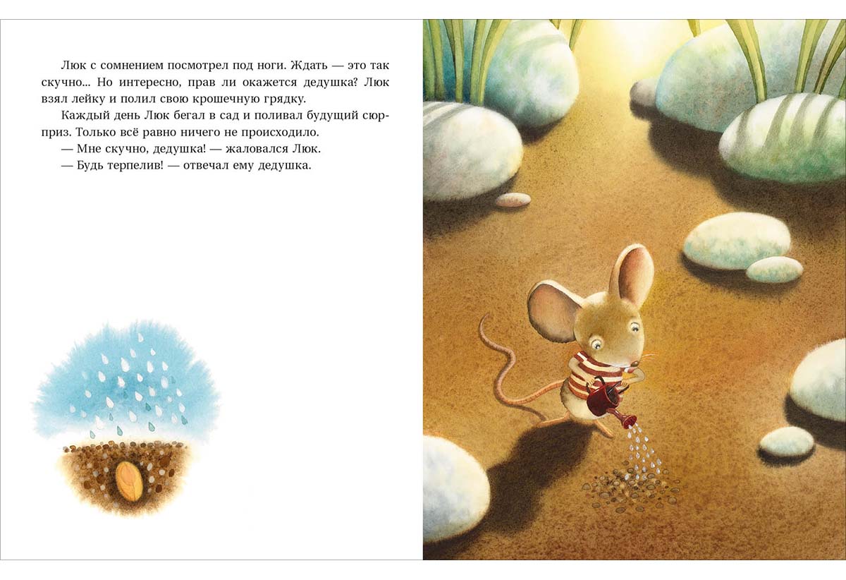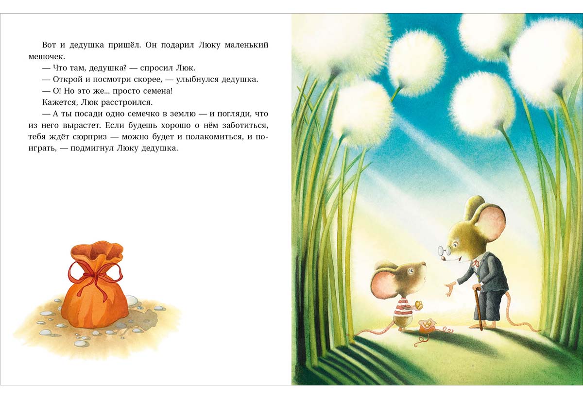 У мышонка Люка День Рождения! Друзья поздравляют его и дарят подарки. А дедушка в этот раз подарил? мешочек простых семян. Он предлагает мышонку посадить семечко в землю и поливать каждый день, и очень скоро Люка будет ждать необыкновенный сюрприз. Но мышонок сомневается. Разве может обыкновенное семечко чем-то удивить? И всё-таки он решает проверить?