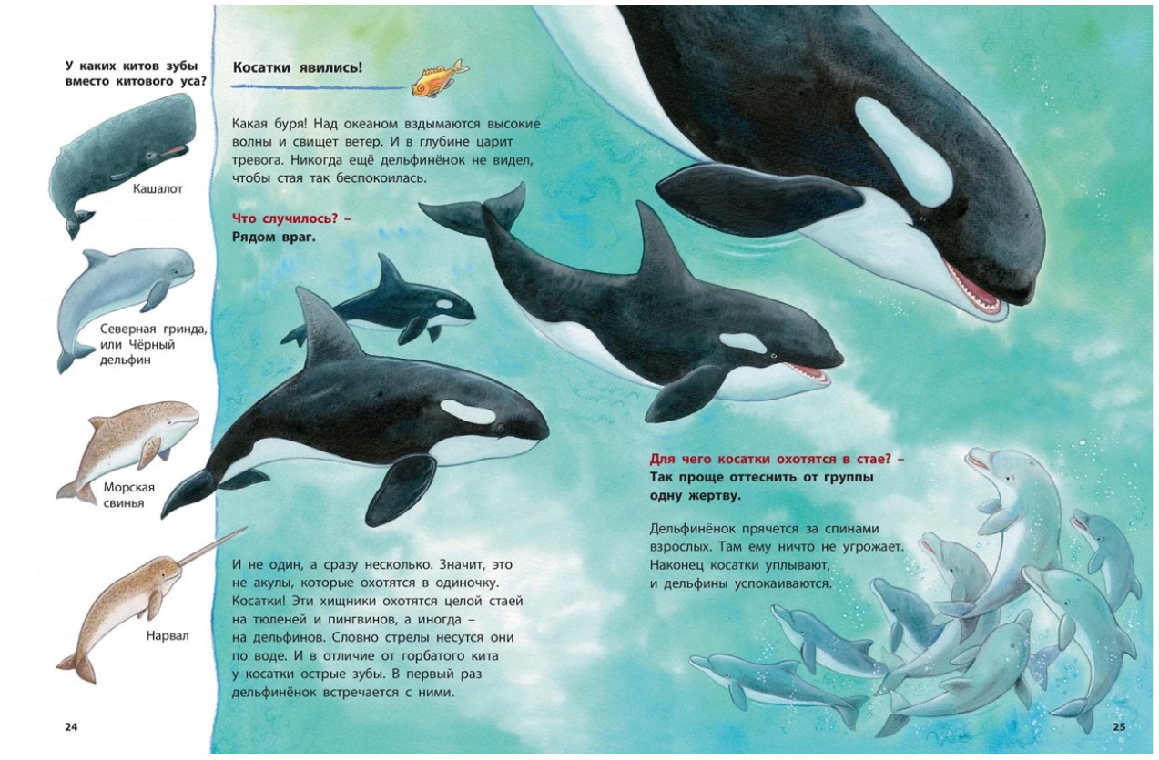 Перед вами красочные познавательные истории о жителях морей и океанов. Чем млекопитающие отличаются от рыб? Что у кита на обед? Где живут гигантские кальмары? Какие хищники в море самые опасные?