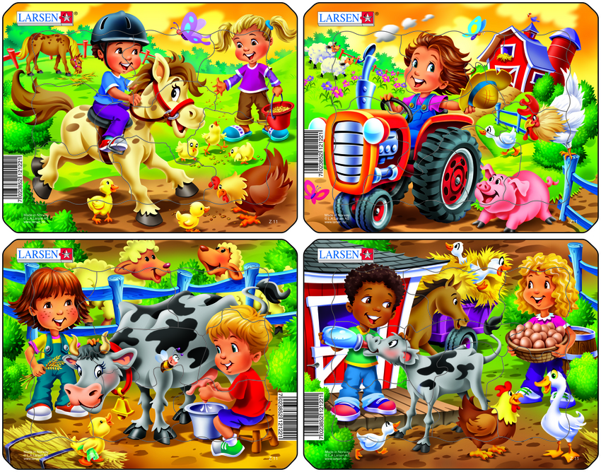 Красочные пазлы от норвежского бренда Larsen расскажут малышам об увлекательной жизни на собственной ферме. На четырех картинках представлены изображения с детьми, проводящими летние каникулы в компании с очаровательными животными.