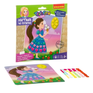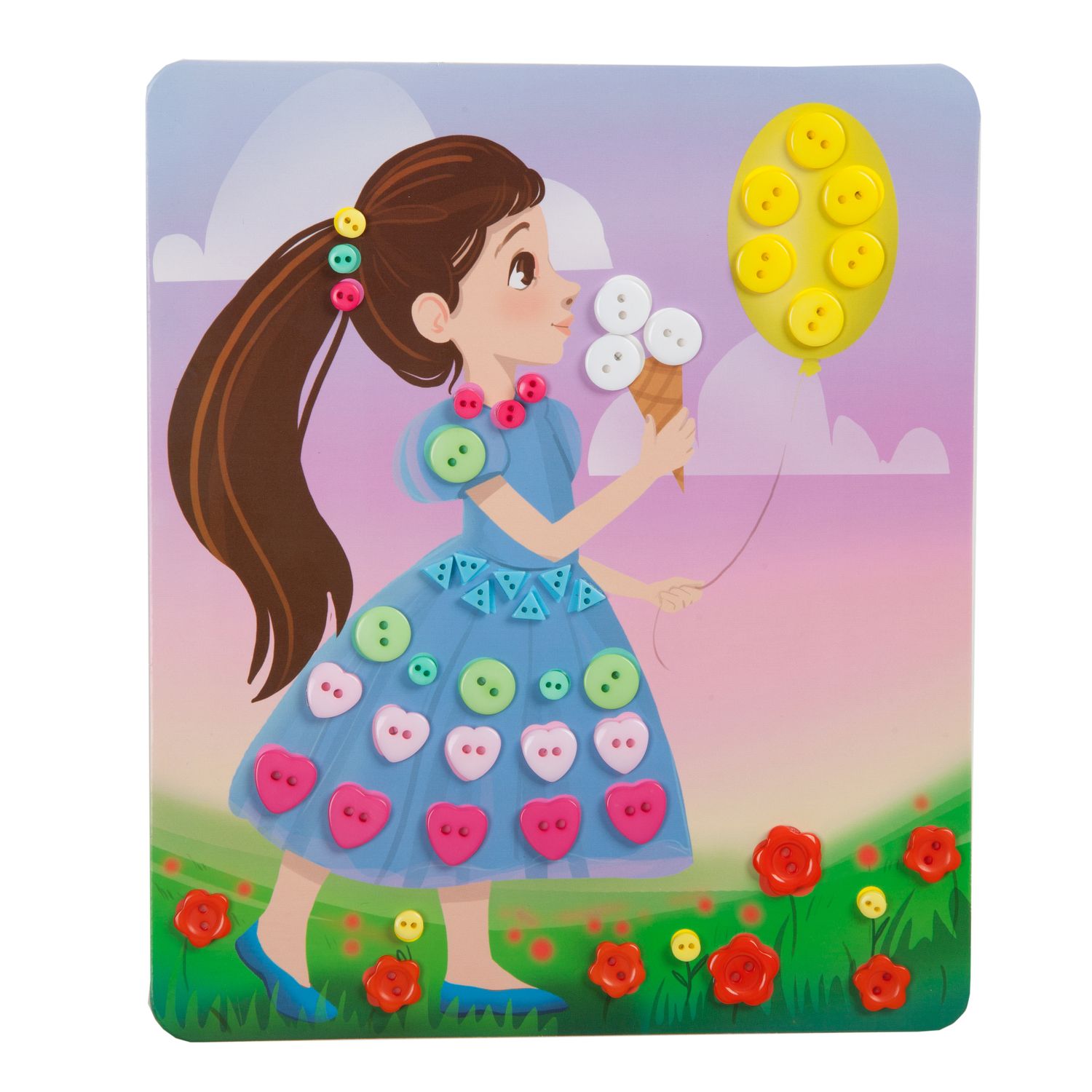 Красочные самоклеящиеся пуговки разных размеров легко крепятся к основе, создавая объемный сюжет.