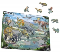 - Из 65 деталей удастся собрать картинку с разнообразными динозаврами. Они изображены в естественной среде обитания, поэтому выглядят весьма натурально и реалистично.