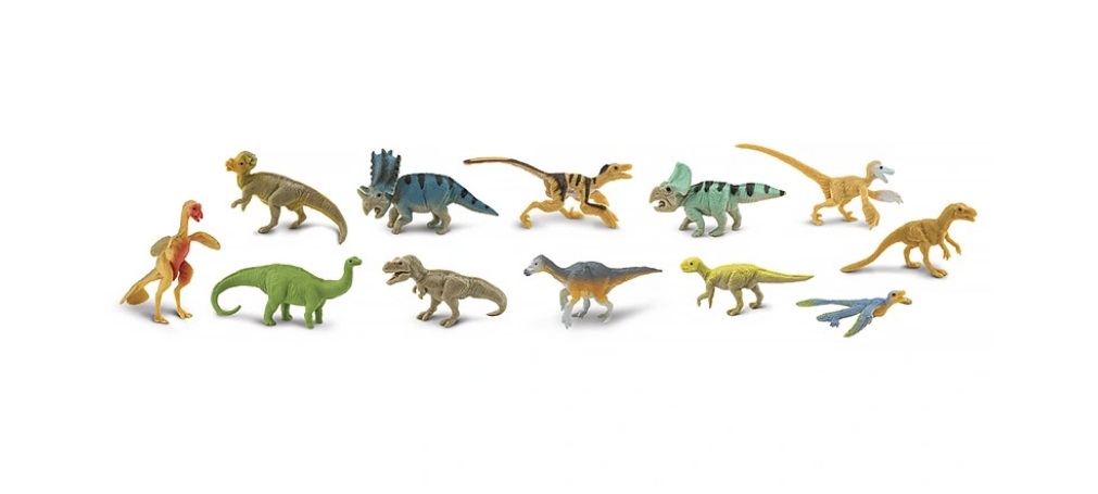 Набор включает 12 фигурок динозавров: пситтакоза́вр, протоцера́топс, пахицефалозавр, хасмозавр,апатоза́вр,тиранноза́вр, каудиптерикс, дилун, бэйпяозавр, микрора́птор, велоцира́птор и синорнитоза́вр. Размер фигурок варьируется от 4 до 7,5 см. Возраст: 3+