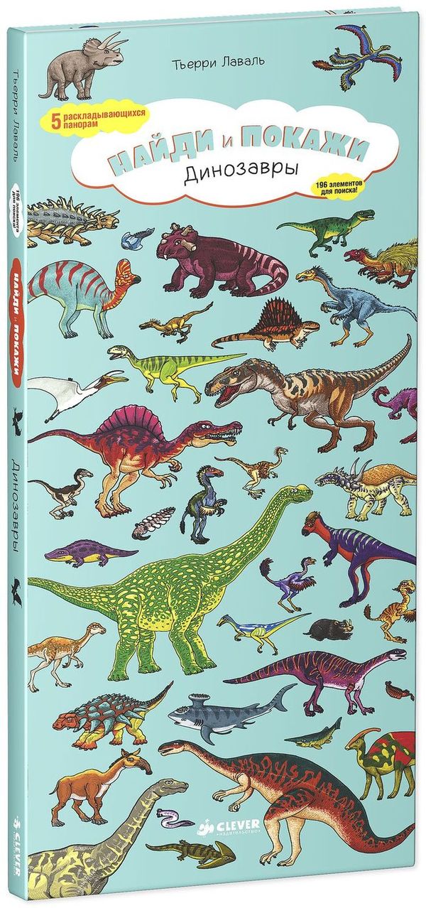 • Книга «Найди и покажи. Динозавры» — это 5 раскладывающихся панорам и 196 предметов для поиска!
