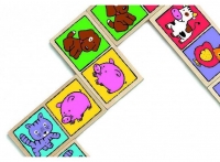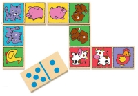 Все карточки двусторонние, на одной стороне изображены животные, на другой - классическая игра домино с точками.
