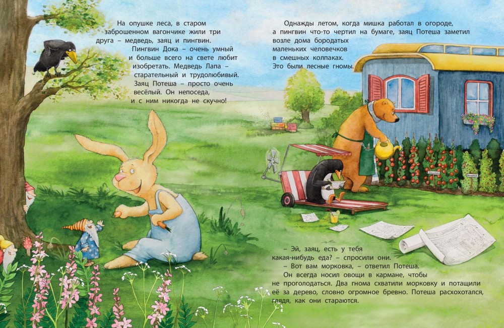 Иногда тот, кого ты считаешь своим врагом, вдруг становится другом! Неразлучные друзья, медведь, заяц и пингвин, страдали от проделок маленьких лесных гномов. Но вскоре гномы неожиданно стали их верными товарищами и помощниками. Ведь дружить – это так весело!