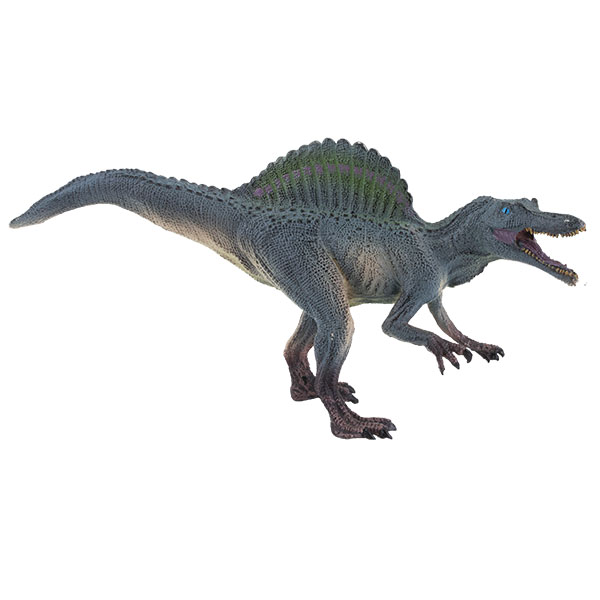 Фигурка Спинозавра с характерными и реалистичными особенностями строения туловища и окраса. Фактурная поверхность, имитирующая шкуру животного. Игрушка с хорошей детализированностью.
