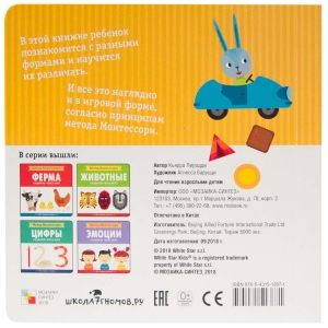 Книга «Формы» серии «Моя первая книжка» создана в соответствии с принципами метода Монтессори и предназначена для развития познавательных способностей, речи и мышления у самых маленьких.