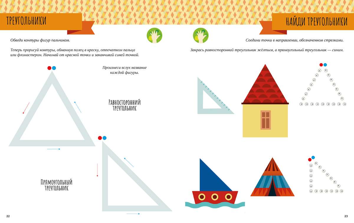 Включённые в книгу игры, раскраски, вопросы, эксперименты станут для вашего малыша прекрасным подспорьем в изучении им основных (круг, равносторонний треугольник, квадрат) и более сложных (овал, прямоугольник, прямоугольный треугольник, пяти-, шестиугольники) геометрических фигур, их размеров, положения в пространстве.