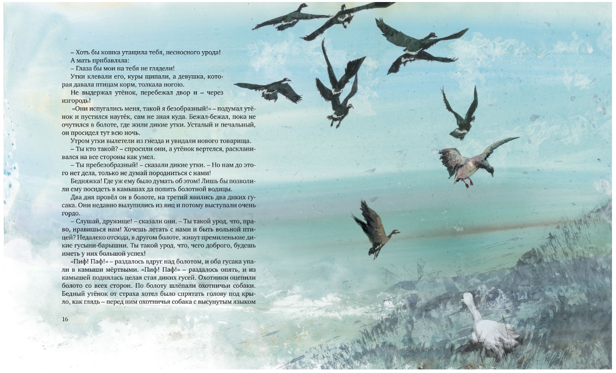 Знаменитая сказка Х.К. Андерсена о гадком утёнке, который превратился в прекрасного лебедя, обрела в этом издании новую жизнь благодаря великолепным иллюстрациям австралийского художника Роберта Ингпена. Он получил всемирную известность как автор и иллюстратор более сотни различных книг. В 1986 году Р. Ингпен был удостоен Международной премии имени Х.К. Андерсена за вклад в детскую литературу.