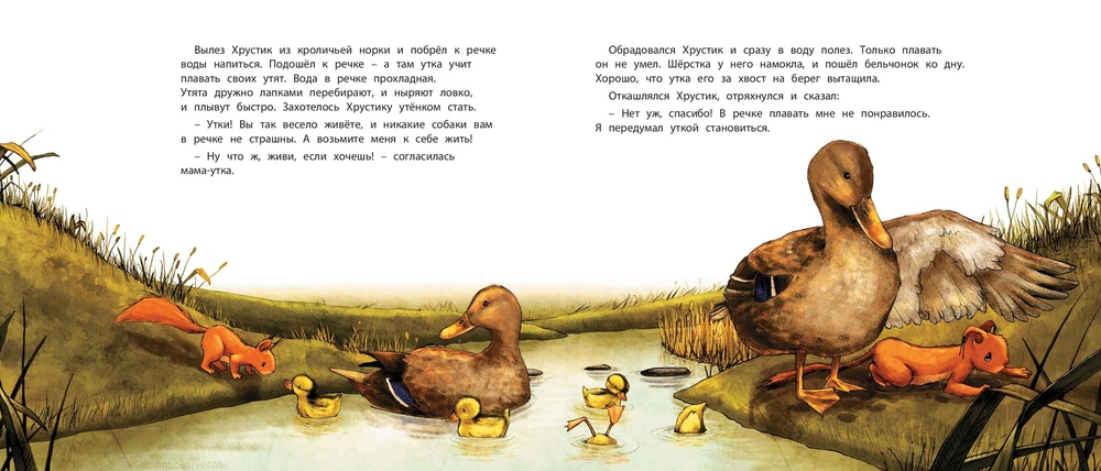 Маленький бельчонок Хрустик был таким робким, что братья и сёстры смеялись над ним и дразнили «маменькиным сынком». И вот однажды он собрался с духом и выбрался из гнезда. Он попробовал побыть кроликом, уткой, дроздом и даже оленем. Но, конечно, в конце концов бельчонок понял, что лучше всего быть самим собой. К тому же он сумел преодолеть свою робость и стал самым храбрым бельчонком на свете!