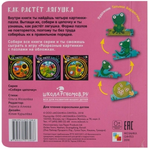 Книга с пазлами «Как растет лягушка» из серии «Собери цепочку» познакомит ребенка со стадиями роста ловкой лягушки.