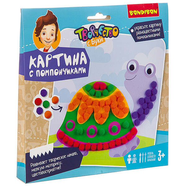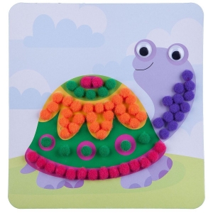 Яркие пушистые помпончики и забавные сюжеты сделают творческий процесс незабываемым. Состав набора цветная основа для картины, набор помпончиков, клей.