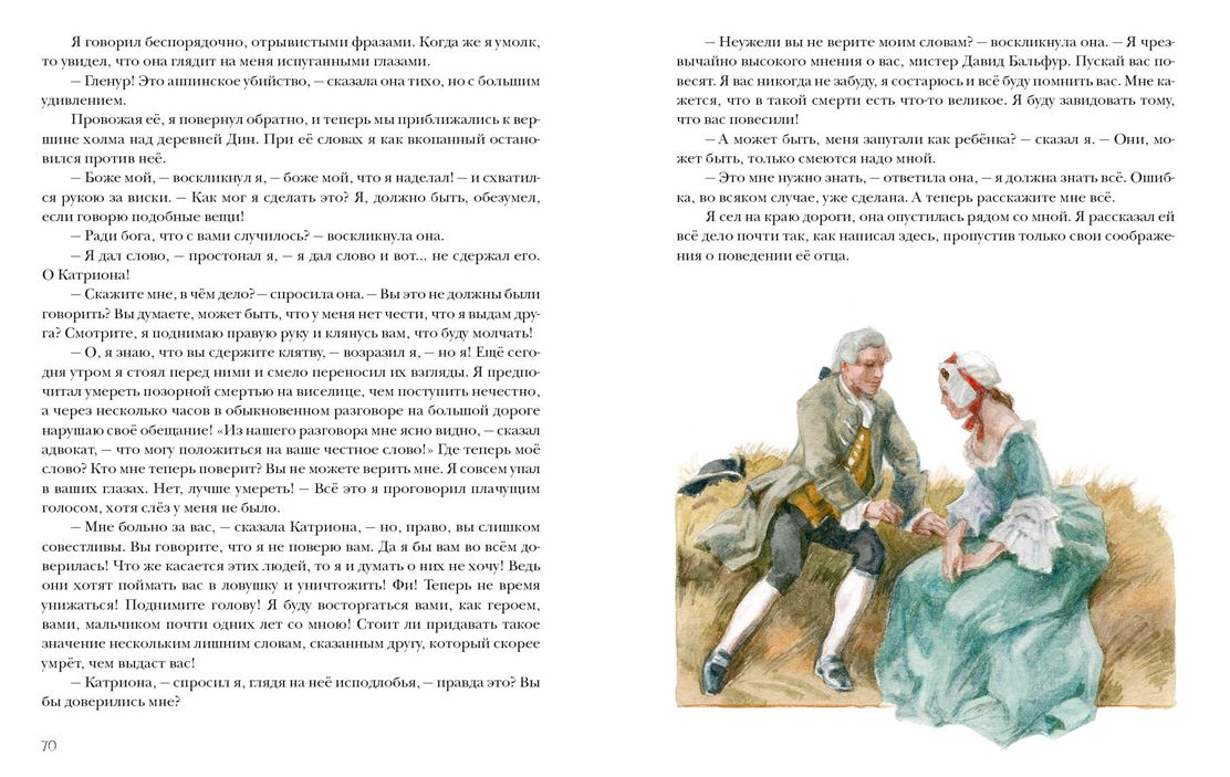 Однако на пути Давида встаёт клан Кемпбеллов, который всеми средствами пытается помешать юноше, вступившемуся за жизнь и честь своих друзей. Но Давид не боится - он храбро бросается в круговорот опасных приключений, где встречает свою первую и настоящую любовь, гордую красавицу Катриону Друммонд - дочь объявленного вне закона преступника Джеймса Мора и внучку легендарного шотландского разбойника Роб-Роя из клана Макгрегоров.