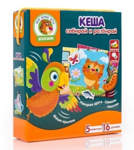 - Помимо картонных деталей в наборе находятся 6 карточек с изображением разных мест обитания, предложите ребенку подобрать к каждому животному характерный фон.