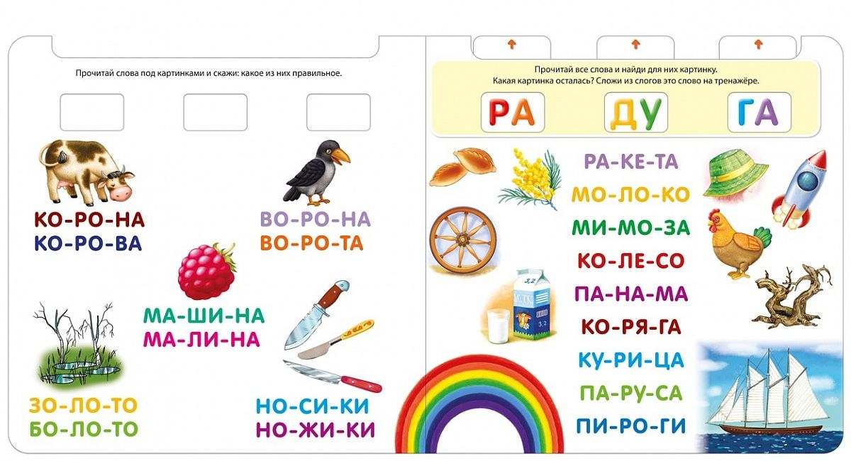 - Красочные тематические развороты и множество интересных заданий:подбери слогу пару, составь слова из слогов, прочитай и найди, преврати одно слово в другое, найди, чем отличаются слова, прочитай наоборот и другие.