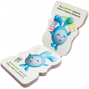 С книжкой «Короткий - длинный» серии «Малышарики. Книжки-фигурки» можно играть, как с игрушкой! Книжка-игрушка в форме очаровательного Барашика познакомит малыша с антонимами. Рассматривая крупные иллюстрации и слушая веселые стихи, он легко запомнит понятия: «короткий» и «длинный».