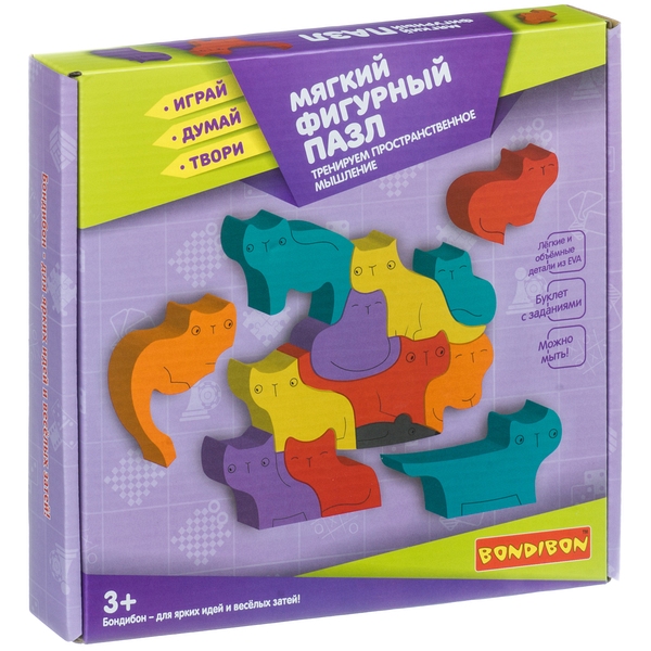 Мягкий фигурный пазл Bondibon Котики Пространственное мышление - это набор из полюбившейся серии Играй Думай Твори, дополняющей серию Играй Думай учись.