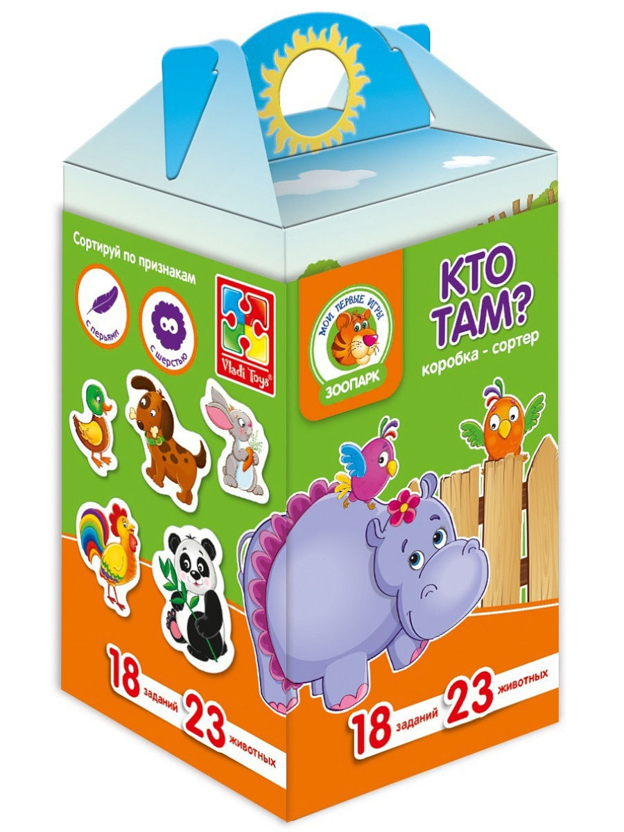 Задача ребенка отсортировать зверей по разным признакам и бросить в подходящую прорезь.