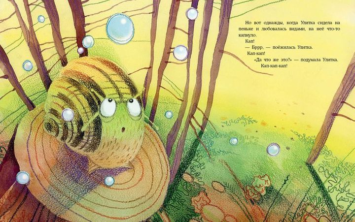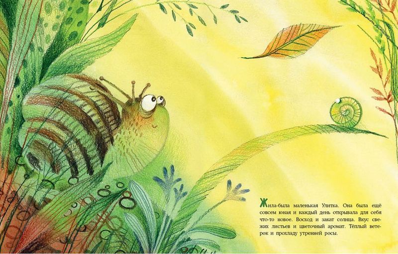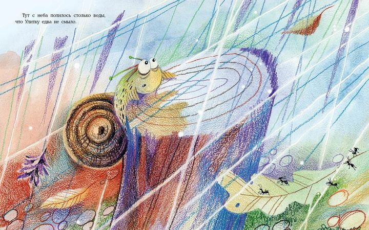 Маленькая Улитка живёт в лесу. Каждый день она открывает для себя что-то новое и удивительное - восход и закат солнца, необычные запахи трав и цветов. Но неожиданно дождь застаёт Улитку врасплох - она не может спрятаться дома, потому что? не знает, где её дом! У всех её друзей есть норки, гнёзда, кусты и пеньки: у Ёжика, Зайчика, Бобра и даже у Муравьишки. И только Улитке некуда возвращаться? А может всё-таки Улитка найдёт свой дом и он окажется гораздо ближе, чем кажется?