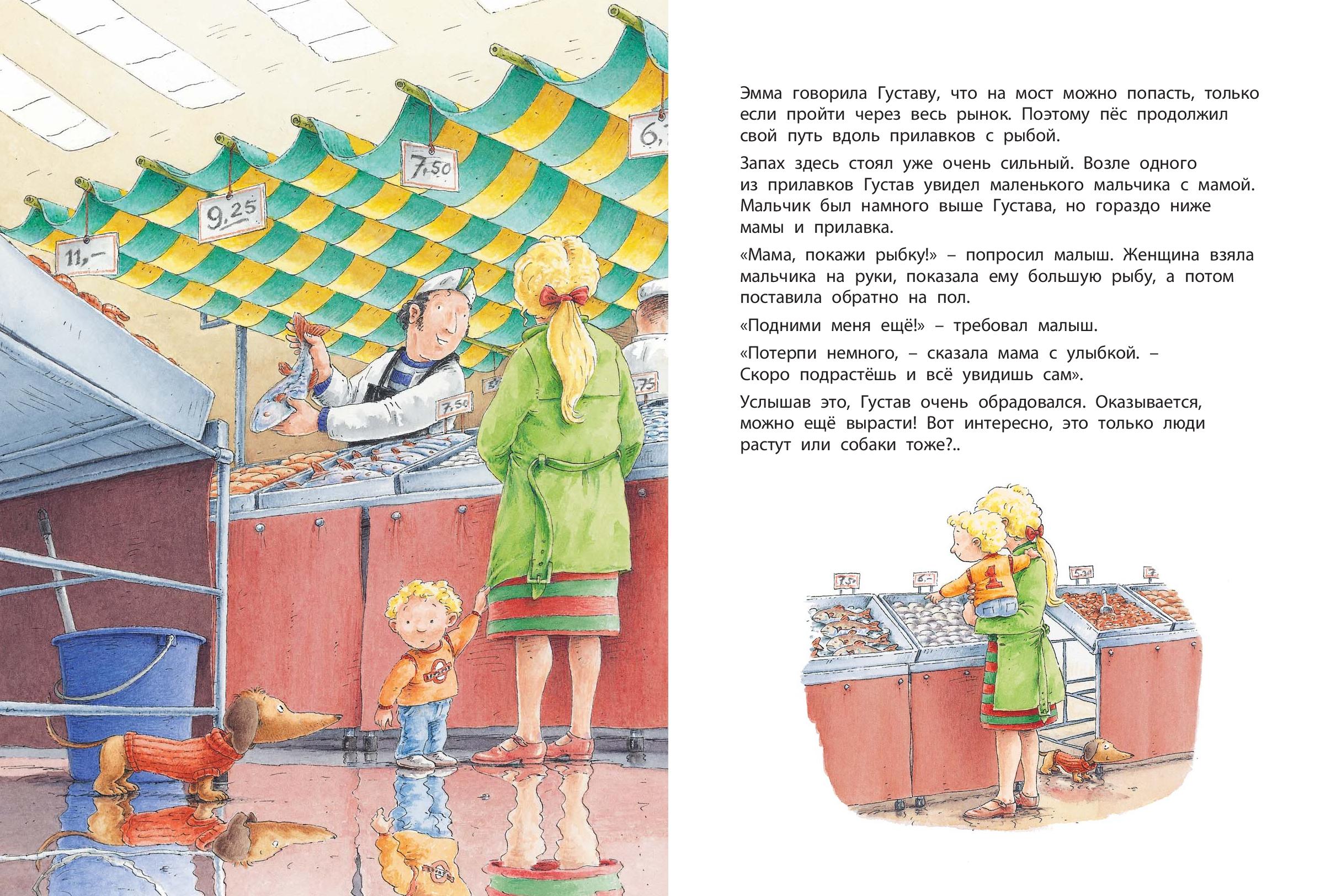 Как плохо быть маленьким! Пёс по кличке Густав живёт в большом-пребольшом городе. У него есть всё, что нужно собаке, - и мячик, и мягкий лежак, и замечательные хозяева... Но Густаву очень хочется посмотреть на мир с большой высоты! Ведь сам он такого маленького роста, что даже до стола не может дотянуться!