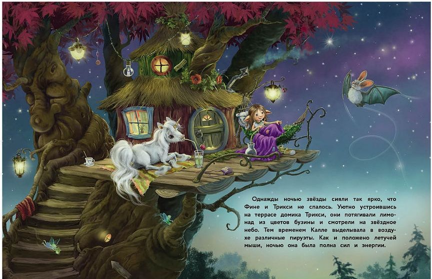А вы знаете, что все единороги могут исполнять желания? Ну то есть почти все. Маленькому единорогу по имени Финя это пока не слишком хорошо удаётся. Зато у него есть верные друзья: летучая мышка Калле и девочка-эльф Трикси. Вместе им любое дело по плечу, и они всегда готовы прийти на помощь. В этот раз нужно срочно узнать, что случилось с лесным озером, воды которого затопили деревню троллей. Волшебство здесь бессильно. Значит, Финя, Трикси и Калле обойдутся без волшебства.