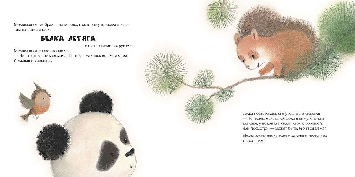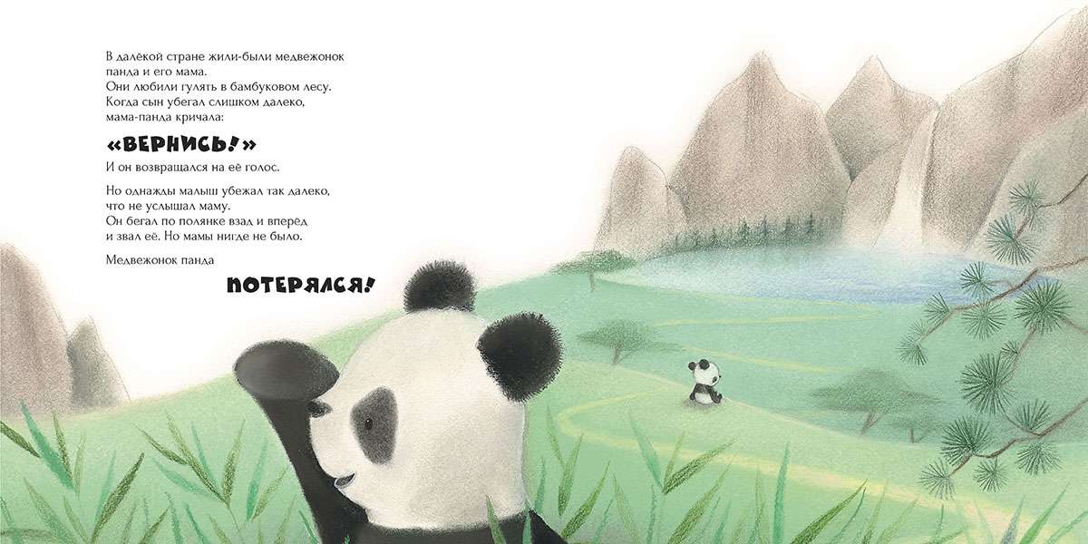 Медвежонок панда обожает гулять с мамой по самому красивому на свете бамбуковому лесу. Но однажды он отбежал от мамы слишком далеко и потерялся! Малыш отправился искать маму и встретил необычных зверей: бамбуковую крысу, белку летягу, рыжую обезьяну и красную панду. Они помогли медвежонку добрым советом — и мама нашлась! Малыш так обрадовался, что пообещал никогда больше не теряться и познакомил маму со своими новыми друзьями.