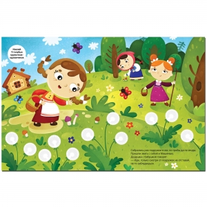 На красочных страницах с яркими и забавными иллюстрациями малыша ждут любимые сказочные персонажи и увлекательные задания – ему предстоит подобрать 96 разноцветных наклеек-кружочков и дополнить ими картинки.