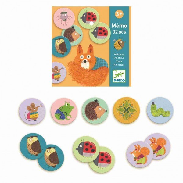 Развивающая игра мемо Животные от французского производителя Djeco (Джеко) - это прекрасная настольная игра на развитие памяти, внимательности и быстроты реакции.