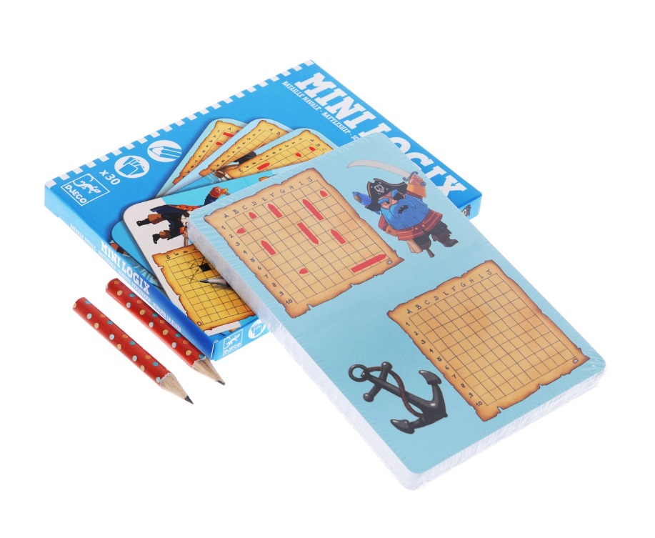 Игроки выбирают карточку и ставят корабли на доске в указанной последовательности, так чтобы соперник не видел расположения. Затем они по очереди обстреливают позиции. Победителем становится первый, кто потопит все корабли соперника. В комплекте 2 карандаша.
