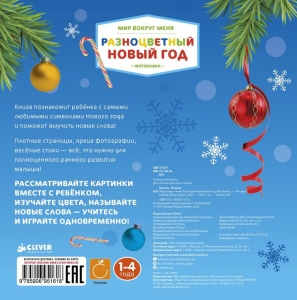 Яркая книга познакомит ребёнка с самыми любимыми символами Нового года и поможет выучить новые слова.