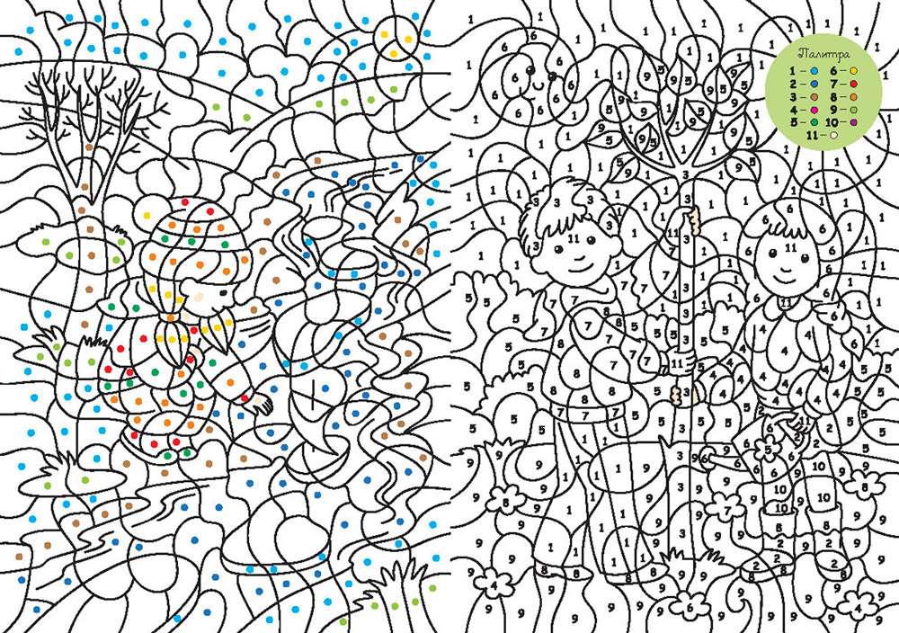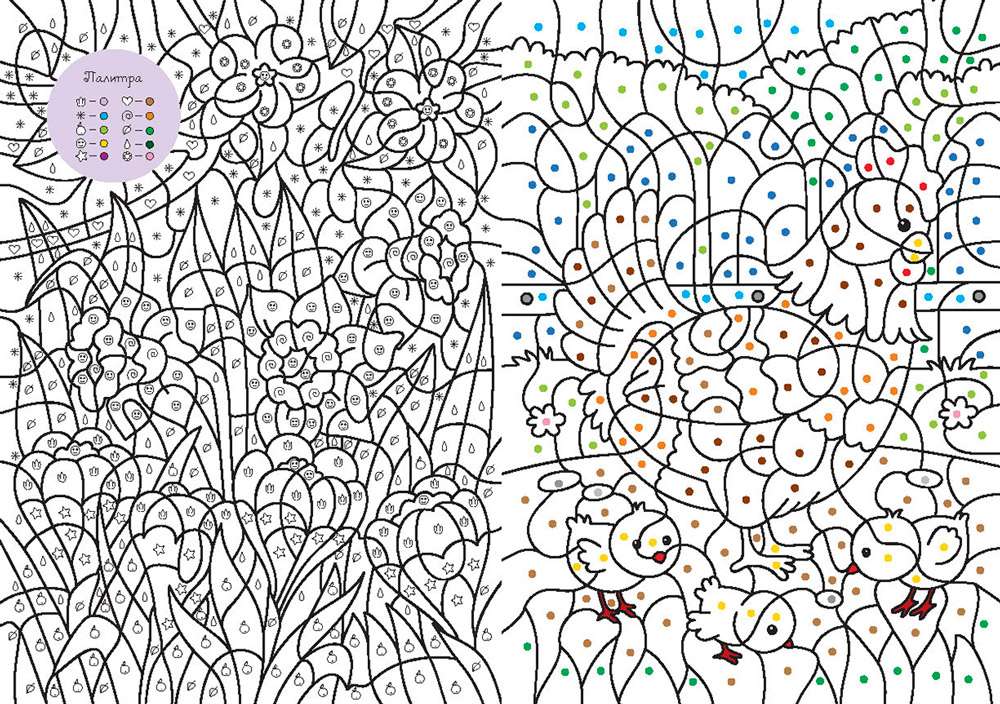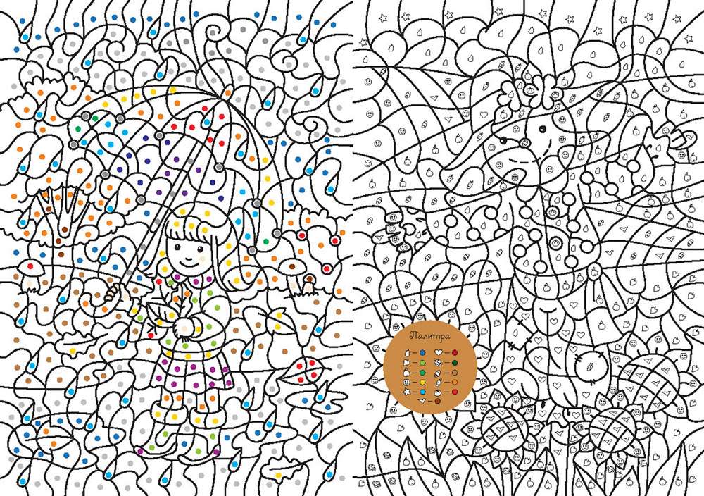 Более 30 волшебных сюжетов для раскрашивания по цветам, символам и номерам.